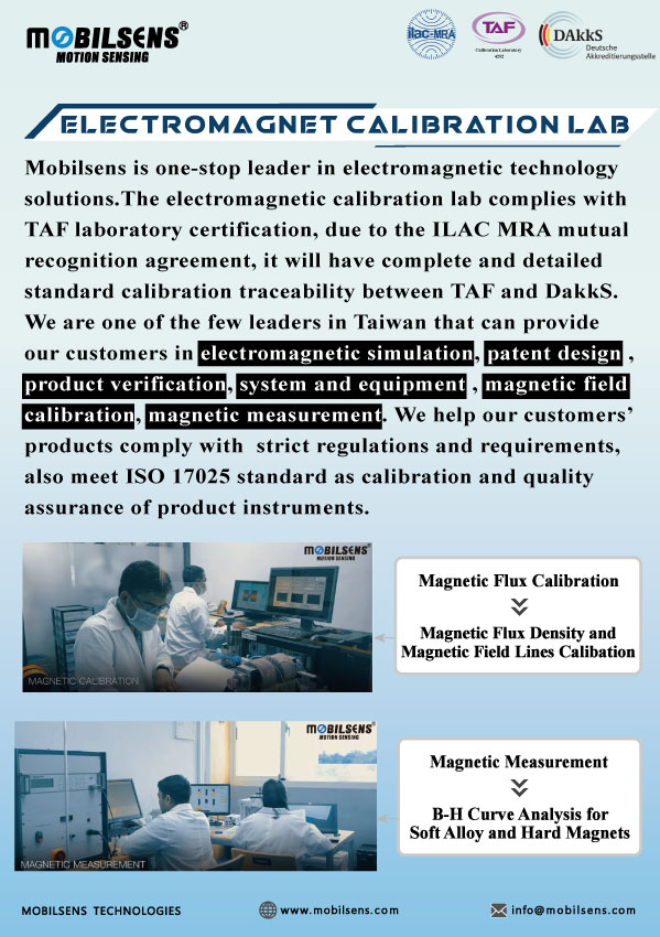 MOBILSENS Technology Inc. is a professional magnetic technology solution engineering consultant and turnkey solution service company composed of specializing in the field of magnetic materials,magnetization manufacturing system, magnetic flux measurement. Design, manufacture and sales of measurement systems and magnetic field analysis and calibration systems. At the same time, technical cooperation with European,American and Japan as manufacturers to develop electromagnetic module/parts/equipment/systems.